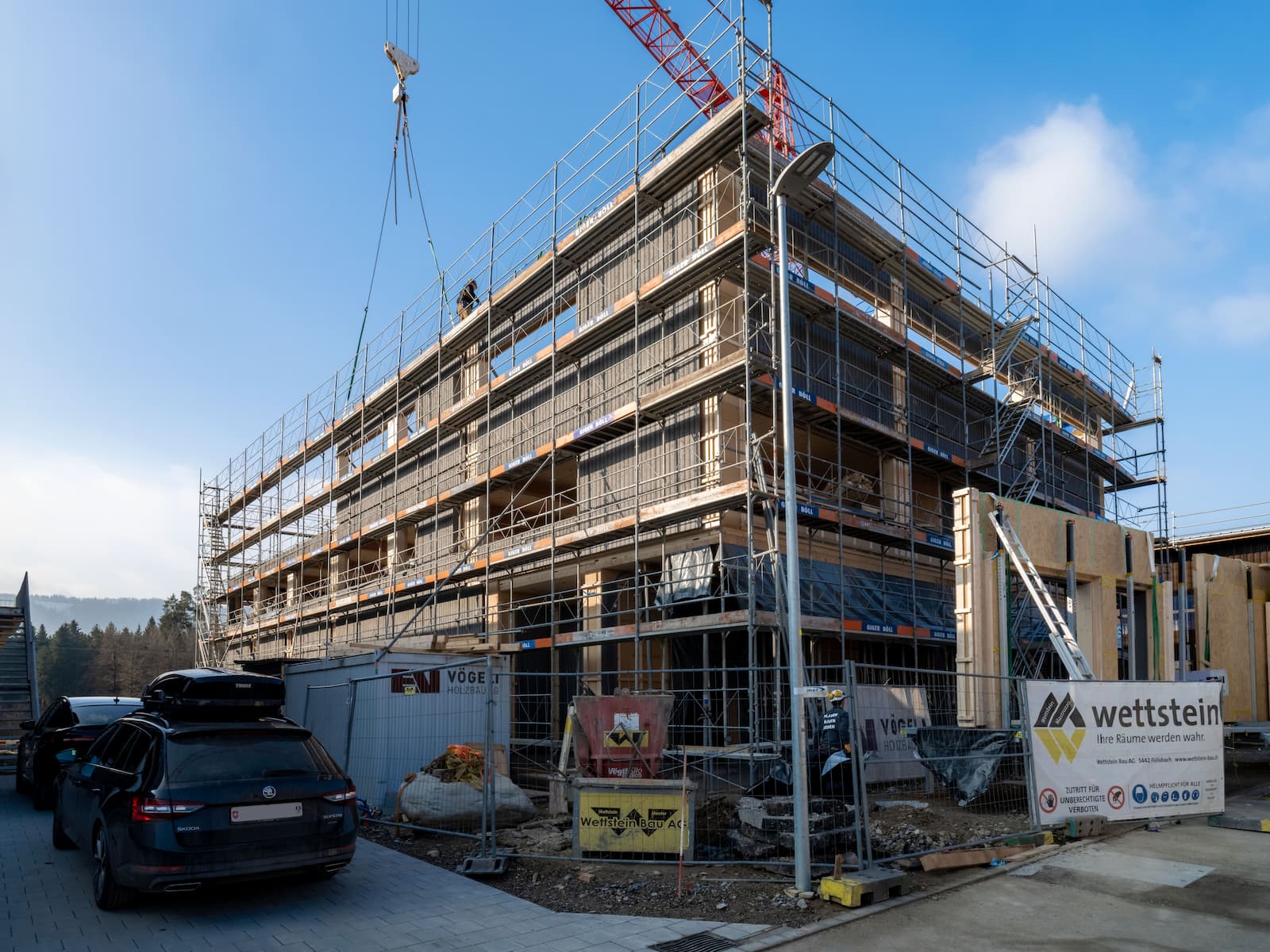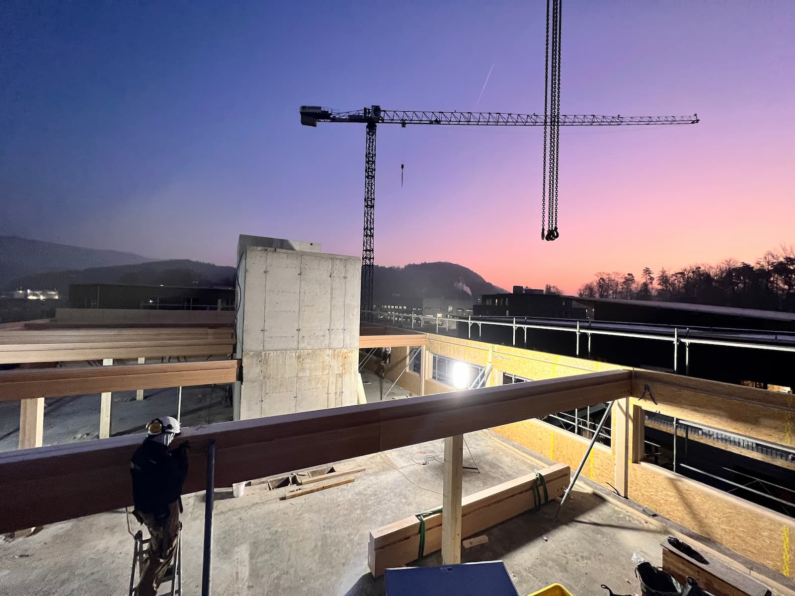 Für das Industrieprojekt in Würenlos wurde eine ganzheitliche Holzsystembaulösung angewendet, bei der sowohl die Aussenwände als auch die Fassade einbezogen wurden. Ein wesentlicher Bestandteil dieses Industriebau ist das Tragwerk welches aus BauBuche besteht, einem vielseitigen und robusten Holzwerkstoff, der die erforderliche Stabilität gewährleistete.