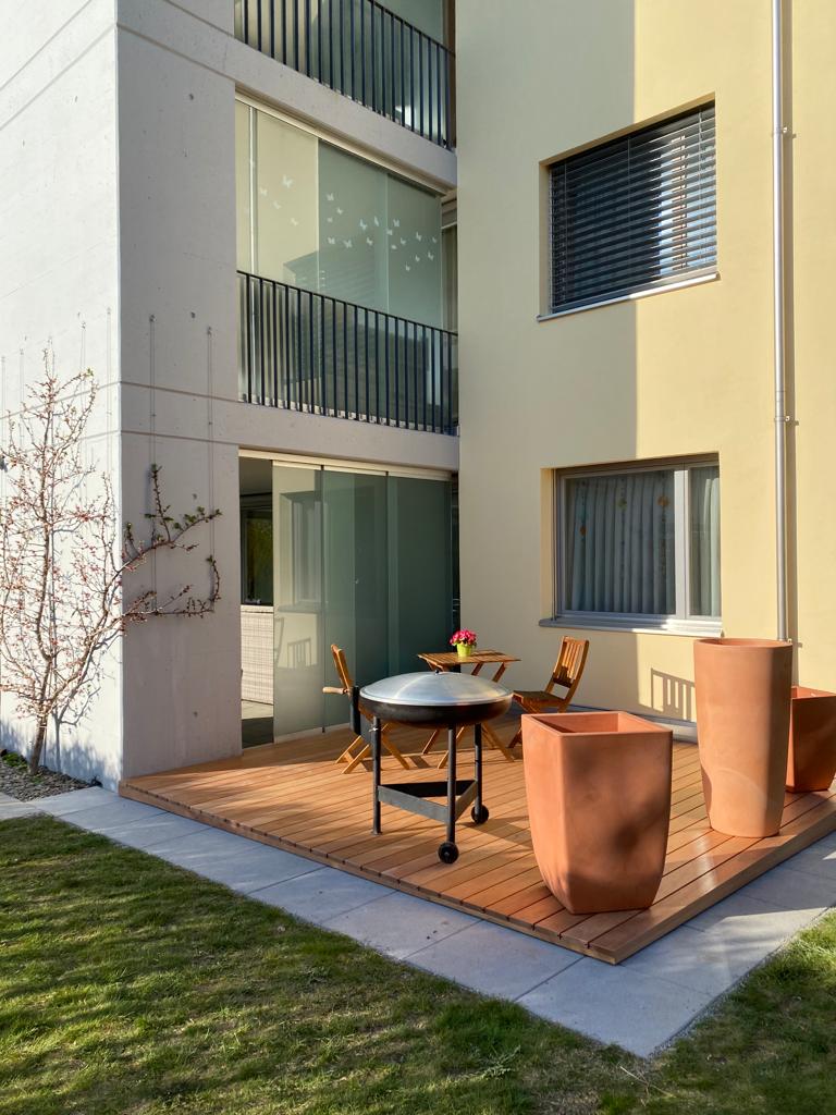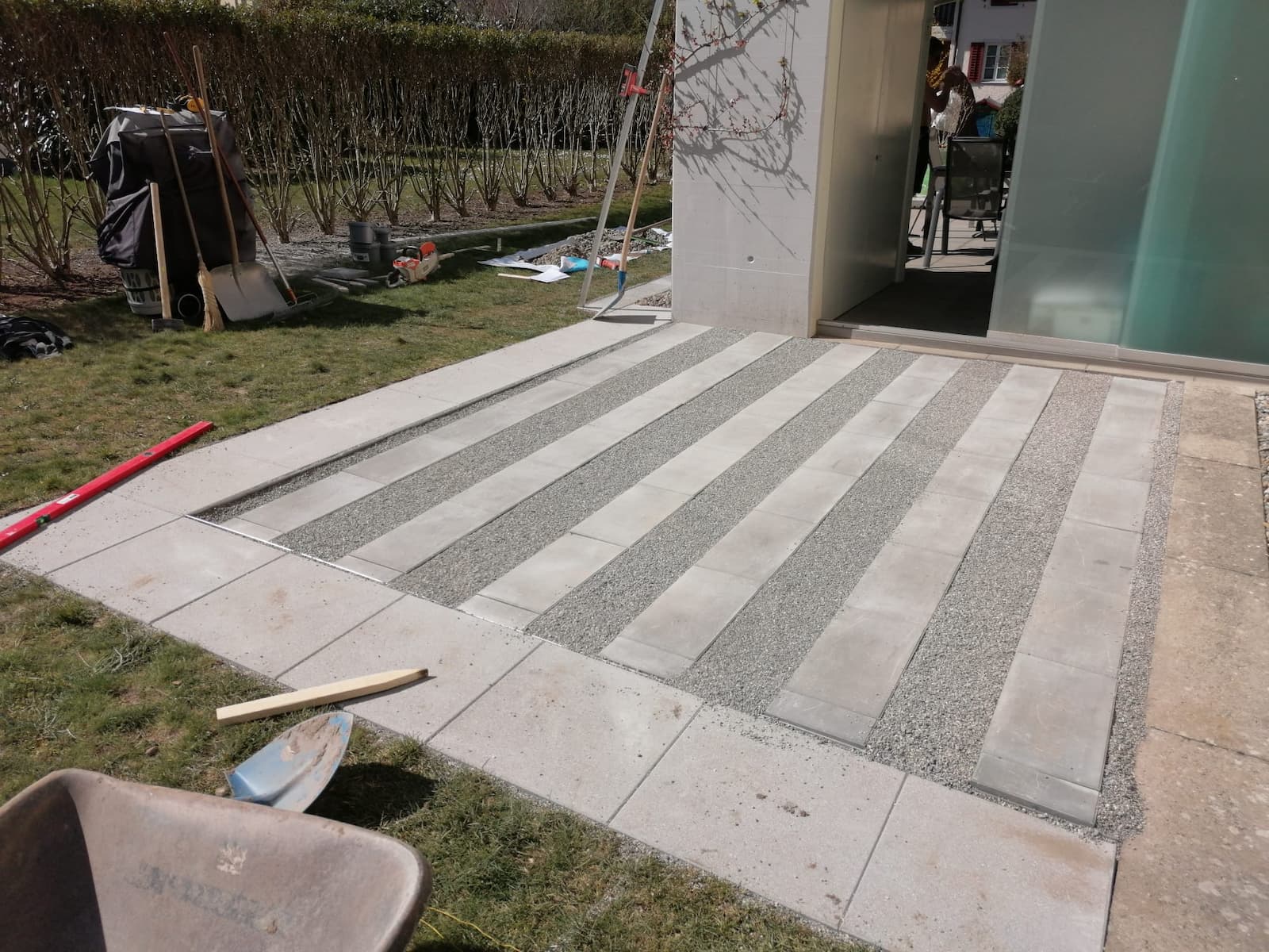 Für unsere Bauherrschaft in Würenlos haben unsere Terrassenspezialisten einen hochwertigen Terrassenboden aus SIPO gefertigt. Der Untergrund musste speziell vorbereitet werden, daher mussten wir zuerst das Erdreich abtragen, um eine optimale Grundlage für den Schutz des Terrassenbodens zu schaffen. Wir füllten Kies auf das verlegte Schutzvlies auf. Auf dieser Kiesbettung verlegten wir Platten, die einen stabilen und ebenen Untergrund für die Montage der UK-Konsole boten. Diese Konstruktionsweise gewährleistet, dass der Terrassenboden nicht nur optisch ansprechend, sondern auch dauerhaft geschützt und stabil ist. Das Ergebnis ist eine ästhetisch ansprechende und langlebige Terrasse, die den Aussenbereich unserer Bauherrschaft in Würenlos zu vielen angenehmen Stunden im Freien einlädt.